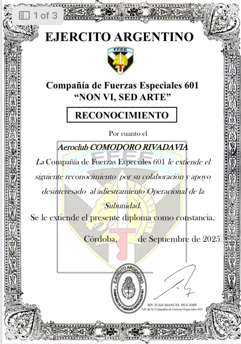El dia 18 de Septiembre, se llevo a cabo en conjunto con un grupo de fuerzas especiales del Ejercito Argentino, un ejercicio de traslado con nuestros aviones, desde Comodoro Rivadavia a la ciudad de Sarmiento.